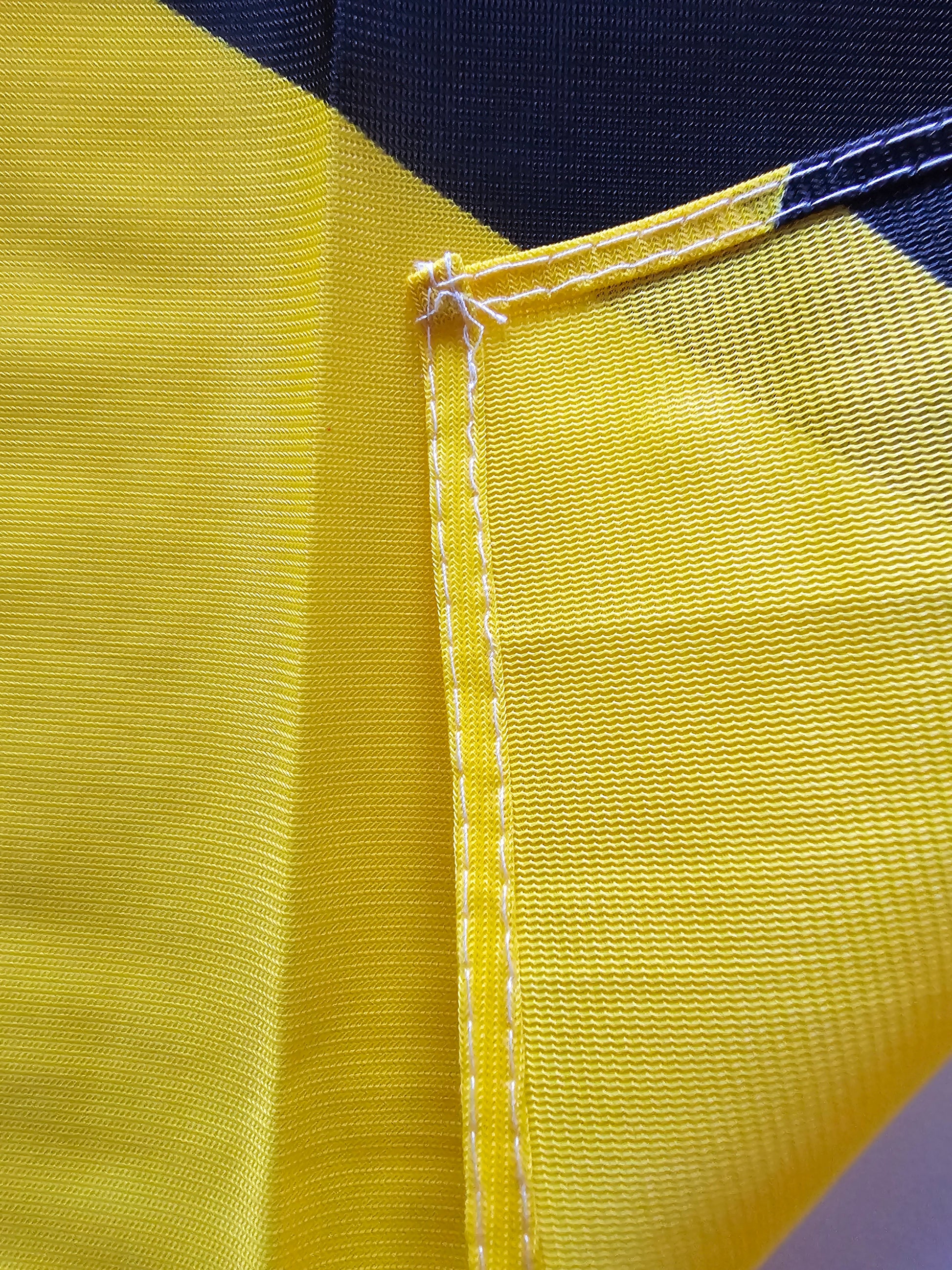 : 2 rows of stitching around flag